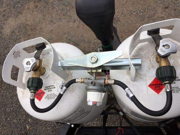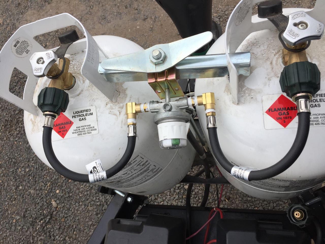 The way the pig-tail hoses are arranged between the tank and the regulator seems a bit chintzy. There is a 45-degree turn in the hose right at the regulator followed by a tight 140-degree turn to get lined up with the valve on the tank. This puts a lot of strain on the hose-crimps. The hoses started leaking at the hose-crimp on the tank end of the set-up and it was made worse if the hose was side-loaded.