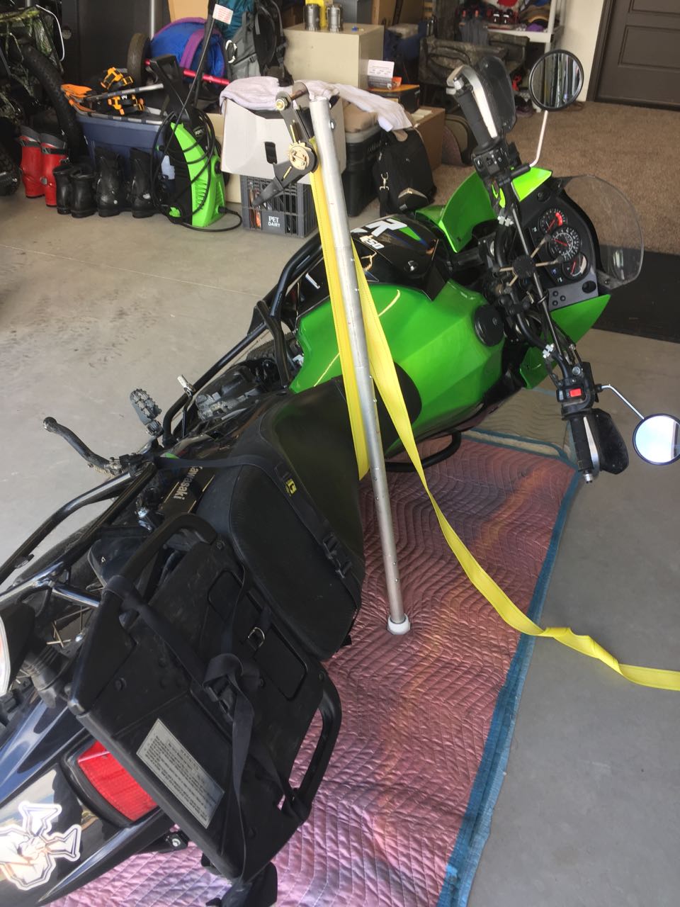 I made it out of 6061-T6 aluminum tubing, which is what airplanes and expensive mtn bikes are made from. I tested it on a friends KLR 650 and it seems to work so now I’m sending it off to friends in Texas to test on the 100-pound heavier Honda Africa Twin and the even heavier Honda VFRX1200. Wish us luck!