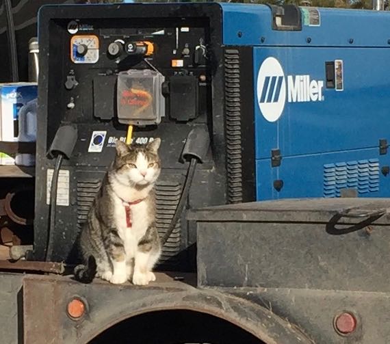 Kitty wants to be a Pipeliner! There are a half-dozen welders working on a big gas pipeline project near here and Kitty thinks it would be fun to learn how to weld pipe