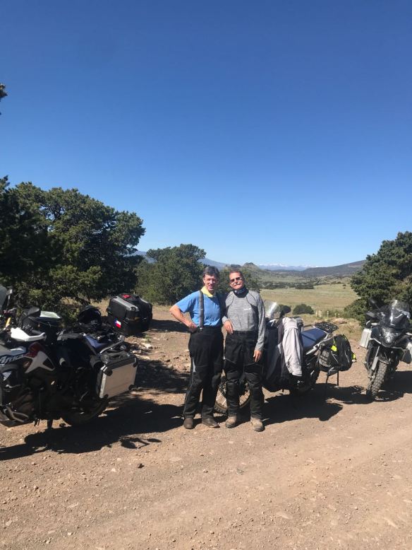 On day one Mike and John rode a rough dirt section of trail in New Mexico and both of them had a date with the dirt. I got to see the battle scars when we met up. Mike broke a side case and John picked up some new scratches
